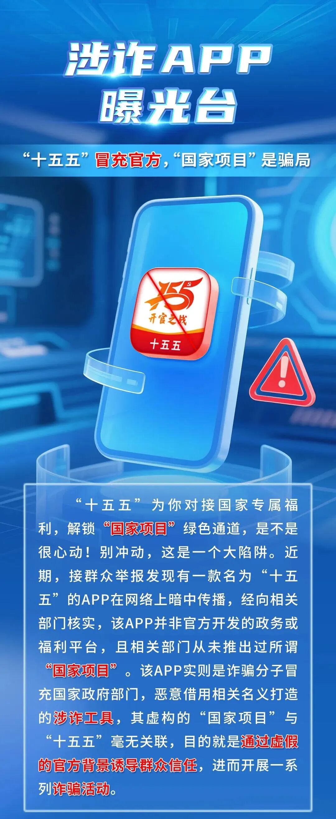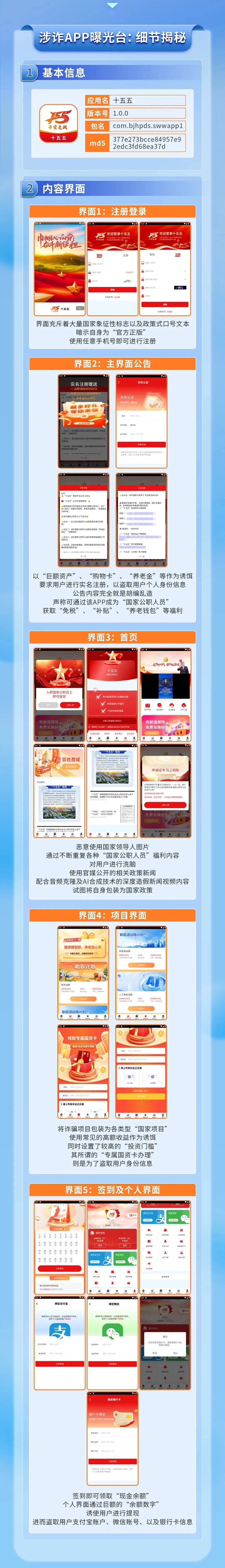涉诈APP套路多,广大群众谨记不明链接不点击、未知二维码不扫描、陌生网站不浏览,从正规途径下载APP。警惕任何声称“内幕消息”“高额回报”“缴纳保证金提现”的活动推荐,通过官方渠道确认国家惠民政策真实性。