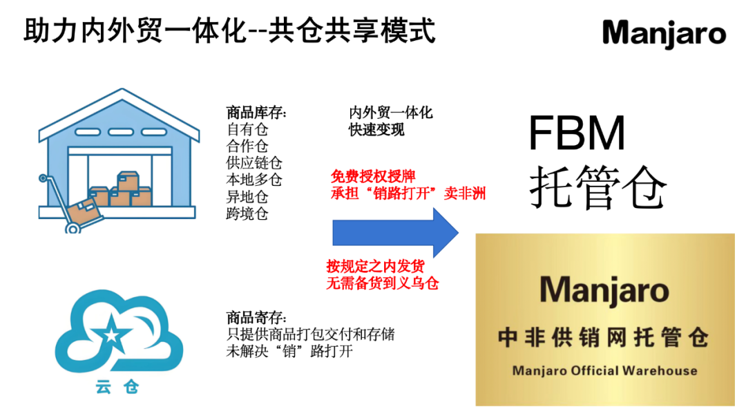 3.2 自有仓库/跨境云仓的库存商品变现,Manjaro推出共仓共享模式,帮您卖、帮您变现。