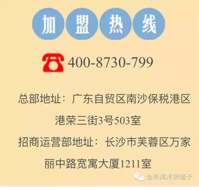 洋货铺子为广州金外滩跨境电商供应链服务有限公司旗下品牌,是一家集进出口贸易、特许加盟运营管理、电子商务于一体的全国性商业连锁企业。
