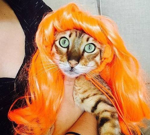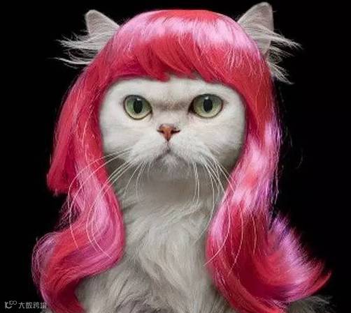 “我有多高冷,一张图就可以告诉你答案,主人给我选的这款粉红色假发,有没有很像水果姐?”