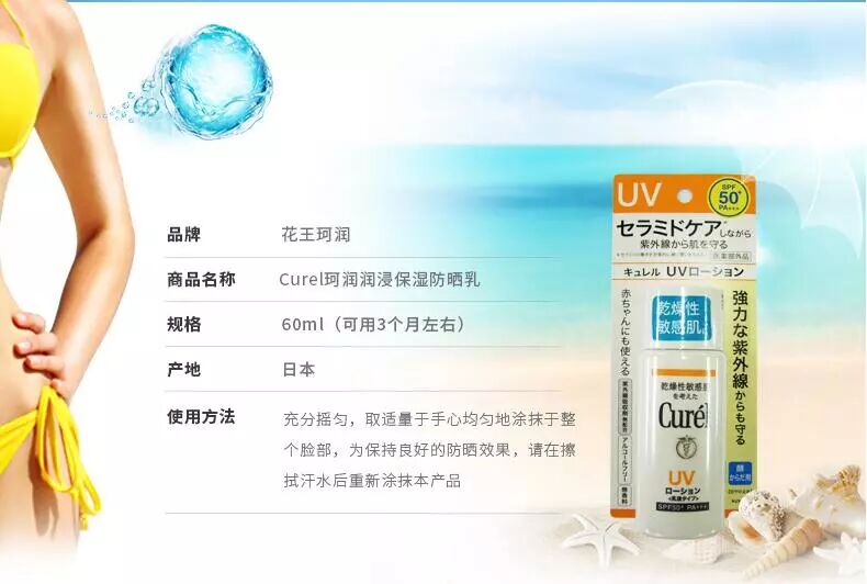 5.花王Curel珂润 UV身体防晒乳液 SPF50+ 60ml