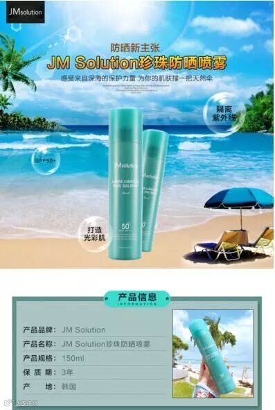 防晒新科技,JM防晒喷雾采用的是DEM防晒技术,不仅可以轻易的阻隔紫外线,阻止黑色素沉淀,还具有淡化黑色素的作用。3重透明质酸与珍珠粉成分,打造水润肌肤。