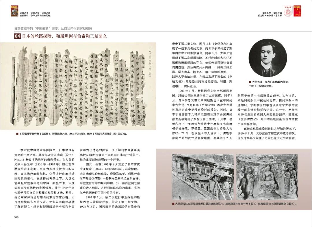 在近代中国的丝路探险中,日本也占有重要的一席之地。其发起者大谷光瑞是日本佛教界的宗教领袖,大谷光瑞年轻时就被派遣到中国、斯里兰卡、印度等国家考察佛教的发展情况,并于1900年到伦敦学习西方的宗教理论和传教方法,期间,他还常常拜访当时知名的东方学家沙畹。正是这种横跨东西的交流,使大谷光瑞很早就了解到斯文·赫定和斯坦因对于中亚和中国新疆古代遗迹的探索,也了解到中国新疆是佛教从印度传播到中国再到日本这一链条中,极为重要却被忽视的一个环节。