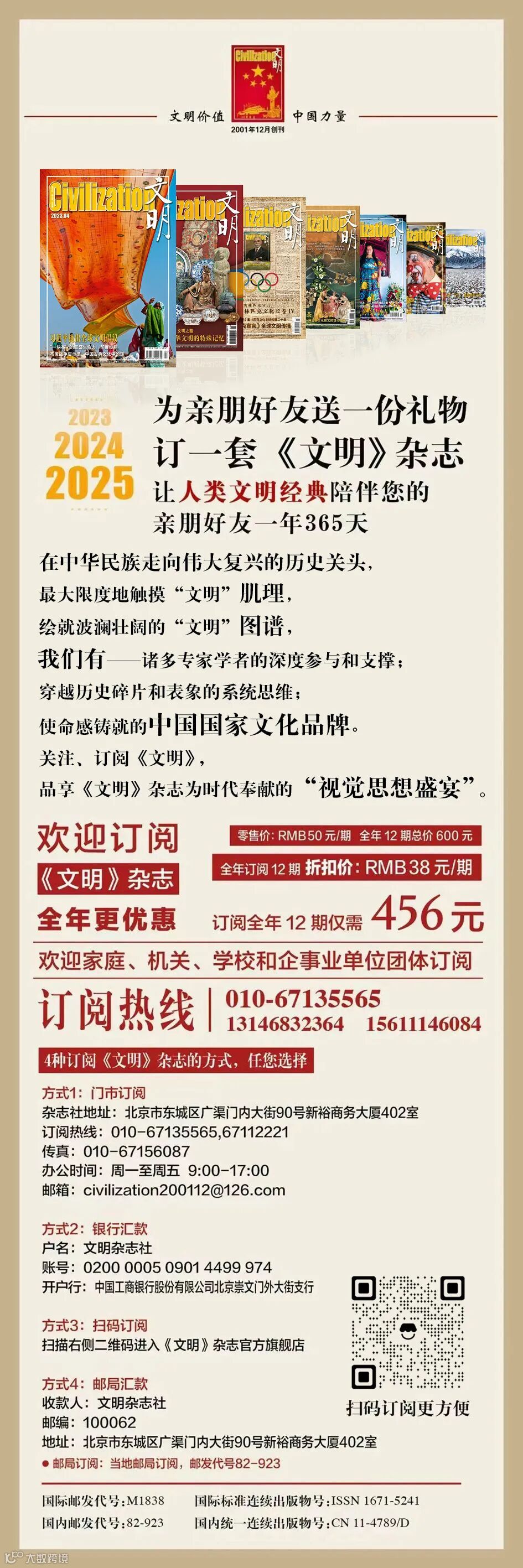 长按识别以下二维码尽享更多精彩内容,进入文明官方旗舰店即刻订阅经典特刊及各期杂志