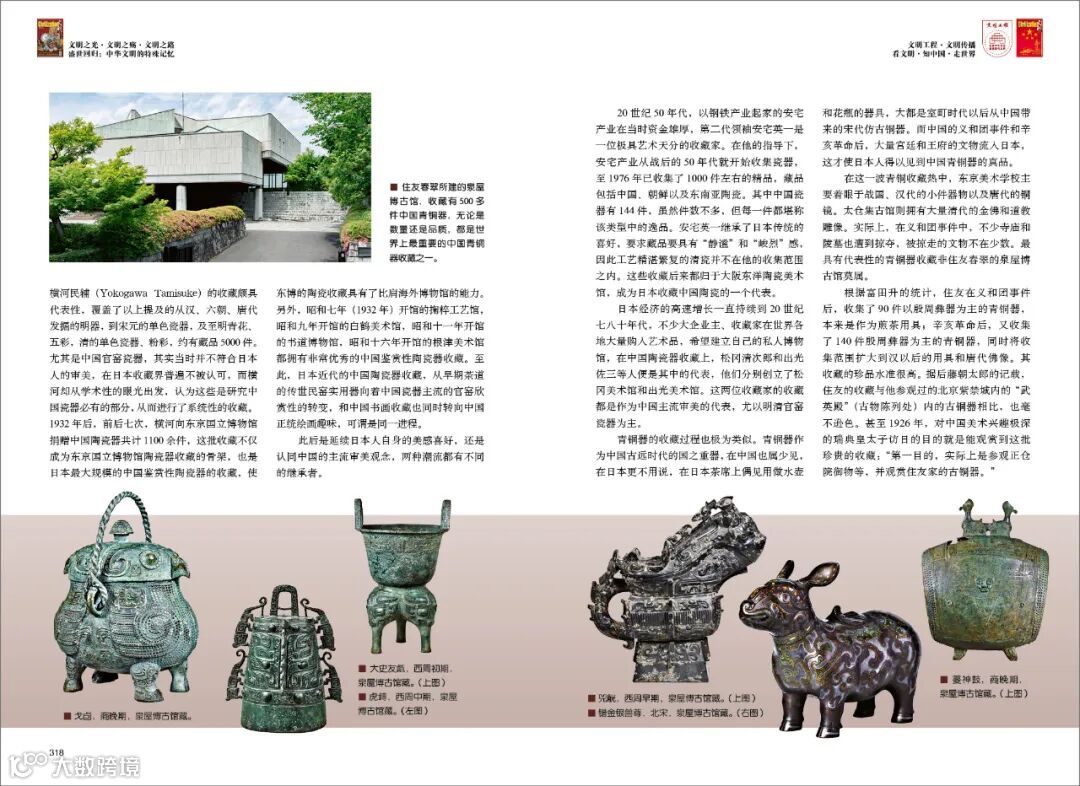 根据富田升的统计,住友在义和团事件后,收集了90件以殷周彝器为主的青铜器,本来是作为煎茶用具;辛亥革命后,又收集了140件殷周彝器为主的青铜器,同时将收集范围扩大到汉以后的用具和唐代佛像,其收藏的珍品水准很高。