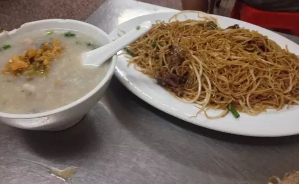 熟悉店主的人都知道,来吃粥当然少不了经过长时间的熬制猪骨,特别是吸猪骨的骨髓是鲜甜。经过长时间的熬制骨头都可以咬烂,绝对是宵夜不二之选。还有吃粥当然少不了最佳的搭配,炒粉!