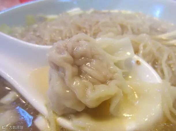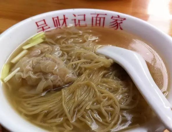 秘制汤底用大地鱼、猪骨、虾皮等材料熬制,面煮一分钟,一碗爽滑的云吞面就完成了。吃面还有小撇步,就是要先吃面,再吃云吞,这样吃银丝面就不被汤泡软了。