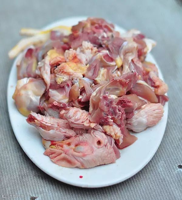 只见厨师在厨房手起刀落,一会儿就将成只鸡砍好件。