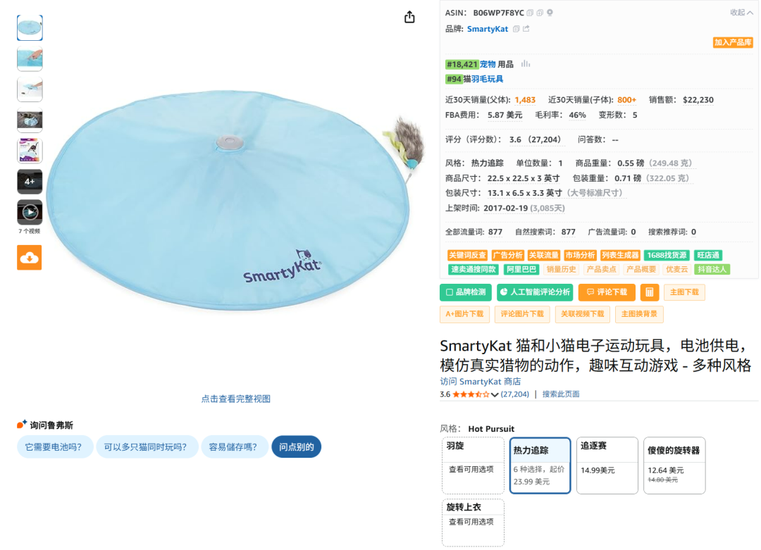 跨境电商爆款案例:电动逗猫玩具,月销1W+,是改头换面?还是万变不离其宗?