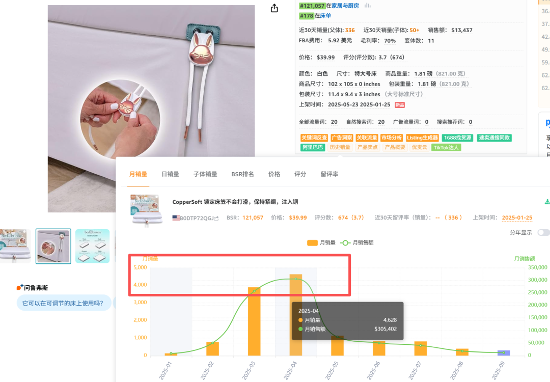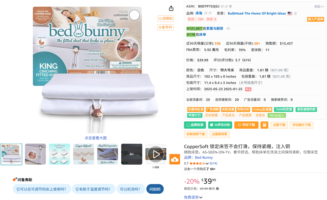 对床单的固定或者锁定需求,是刚需,市场需求空间很大,亚马逊上不断有新品出现,参考以往爆款案例#Zlumber#床单固定器 及其国内很多同款仿品和专利改款新品
