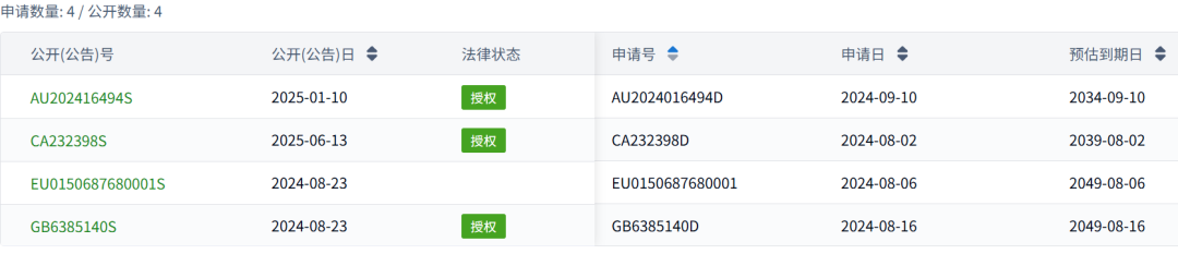 经过我们#跨知易 专利排查,发现bed bunny品牌的有多个国家的专利: