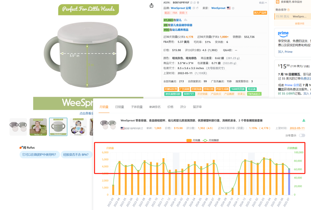 【产品1】--疑似专利改款,低成本、售价16$、长期月销4000-5000