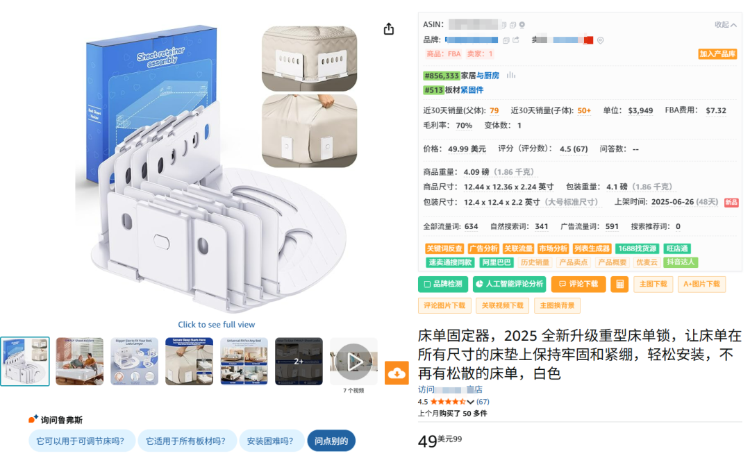 高客单价69.99$ 旺季月销13000+