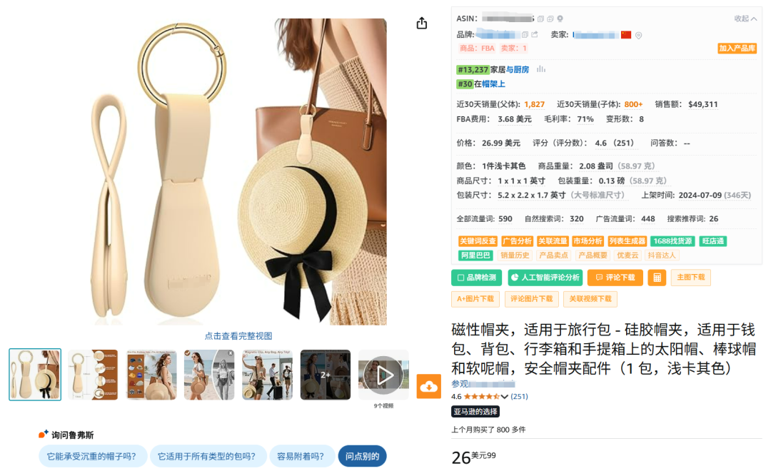 跨境电商爆款案例:磁吸帽夹,低成本高售价、旺季月销7K+,排查到美国发明专利,亚马逊上发现不少改款仿品,注意发明专利侵权可能性?