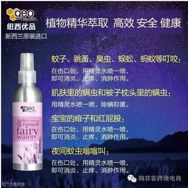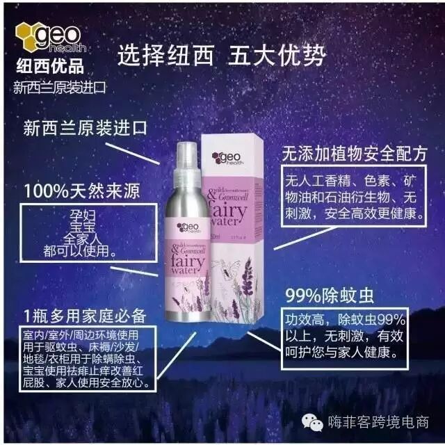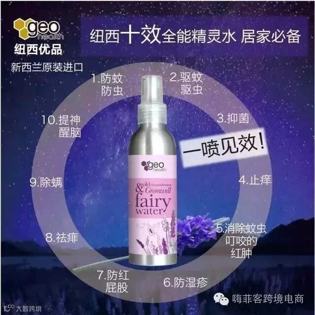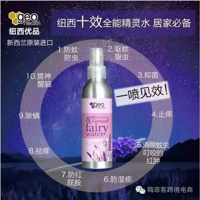 嗨菲客跨境电商纽西优品的精灵水自从去年上市后的默默无闻,到今年的火爆开售,这是为什么呢?品质、安全、功效!经过一年的累积和沉淀,终于迎来了它的爆发期。所有的父母家长都给自己的小孩和家里的老人都配备了精灵水,让家人能够过一个安静的夏天,远离蚊虫!