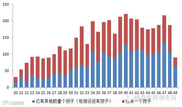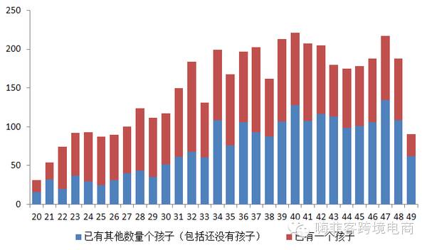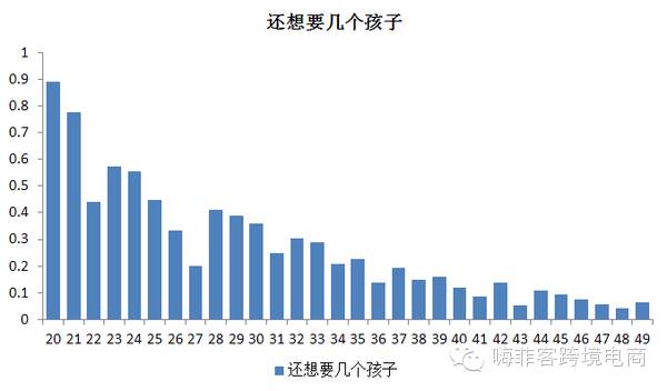 可以看到一个明显的随年龄下降趋势。在一个妻子为20岁的非独生子女夫妇家庭中,如果已经有了一个孩子,那么他们的再生育意愿为0.9个孩子;妻子年龄越大,再生育的愿望也就越低。