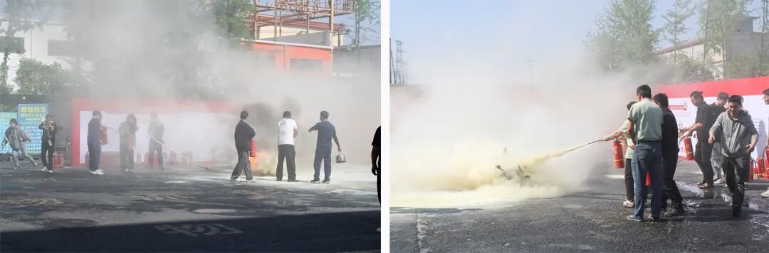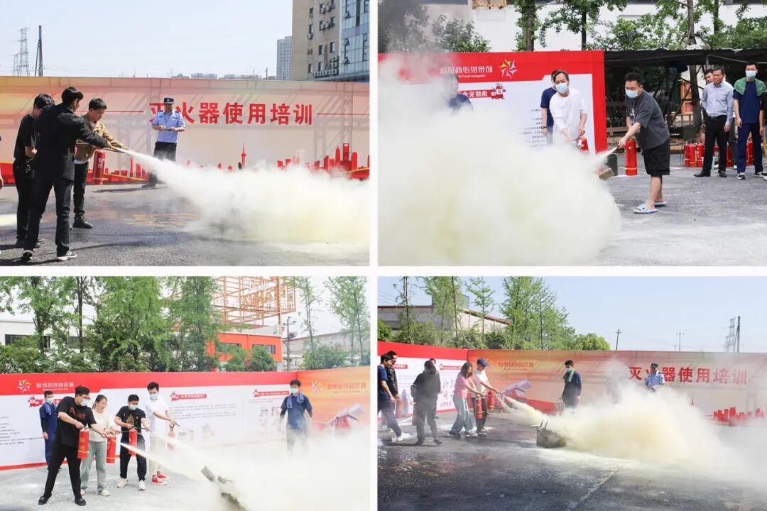 培训分为理论讲解和实操演练两个环节,使用灭火器要牢记“提、拔、握、压”四字口诀,站在上风口,对准火焰根部喷射。