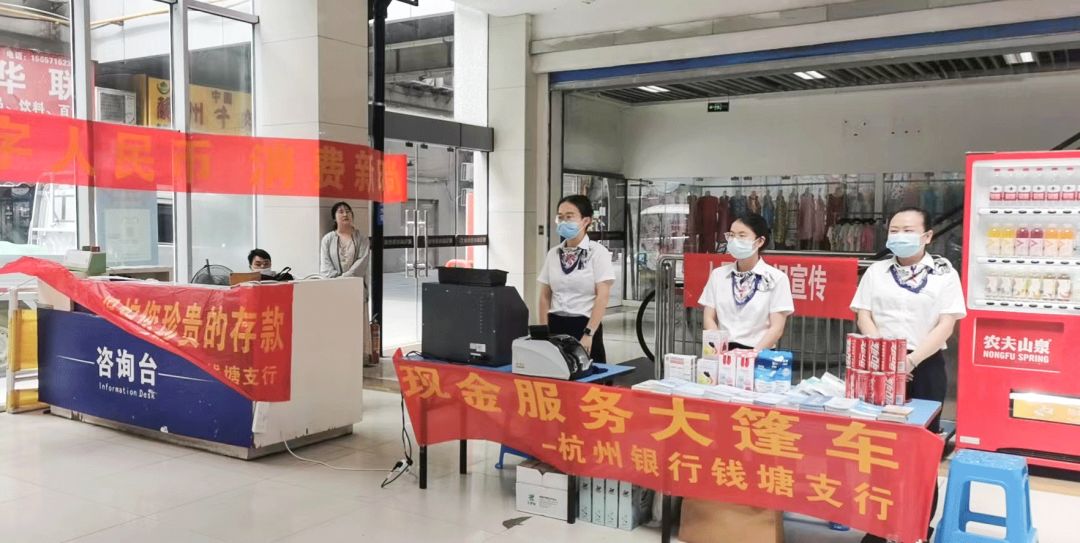 为了打造稳定和谐的人民币现金流通环境,保护消费者的合法权益,杭州银行钱塘支行开展了“现金服务进市场”的活动。