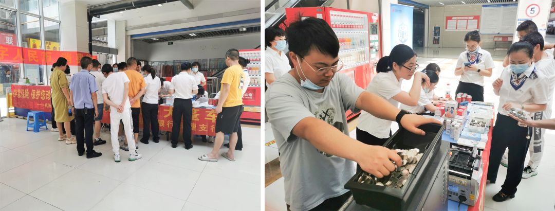 6月23日早上,杭州银行钱塘支行的工作人员来到杭州银沙商贸城市场内,为商户提供零钱兑换、硬币换纸币、残缺币兑换、防伪知识讲解等服务。