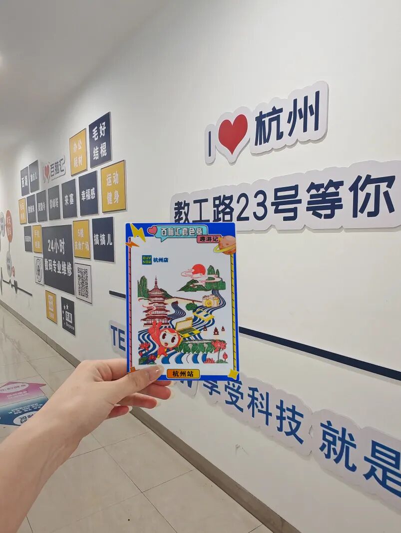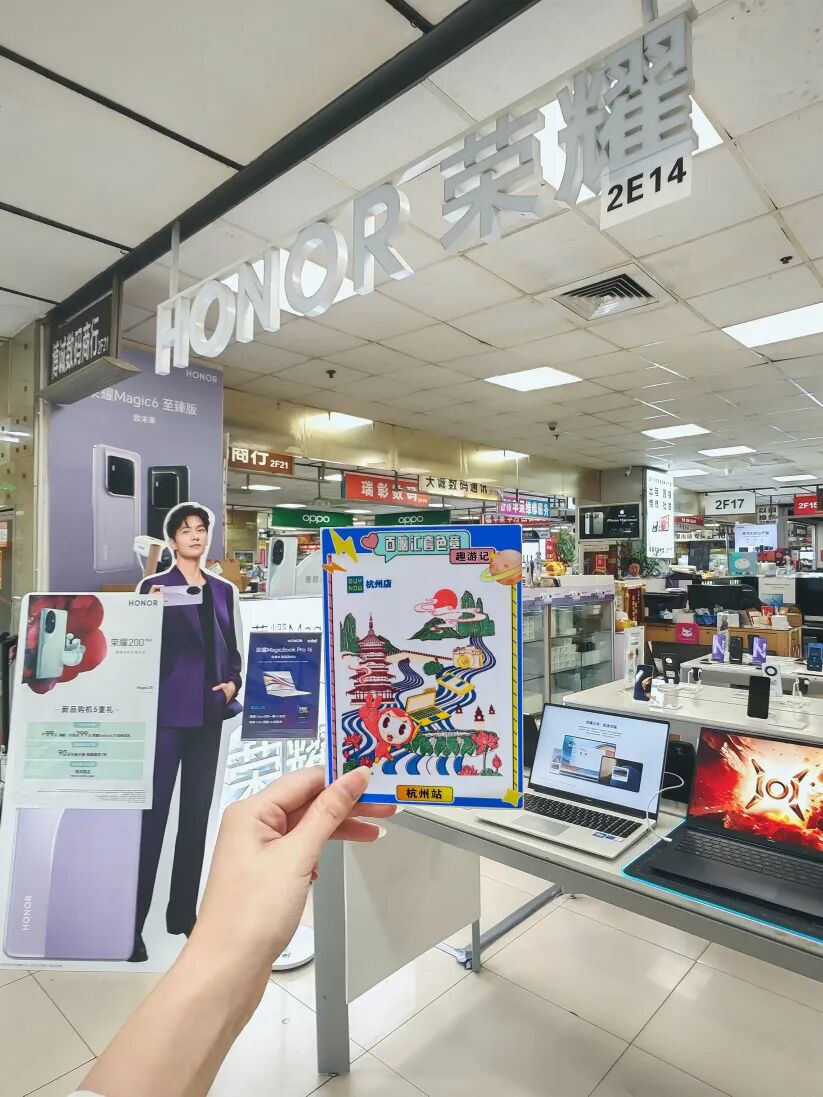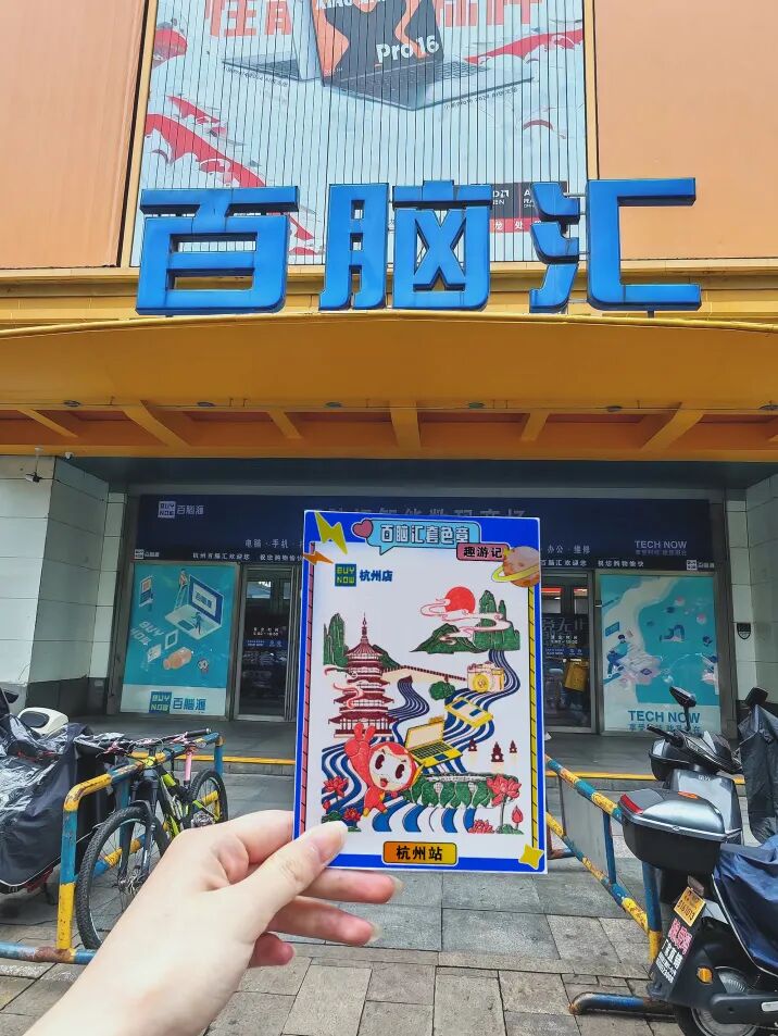 1、手持集齐的套色印章卡在百脑汇正门以及百脑汇内