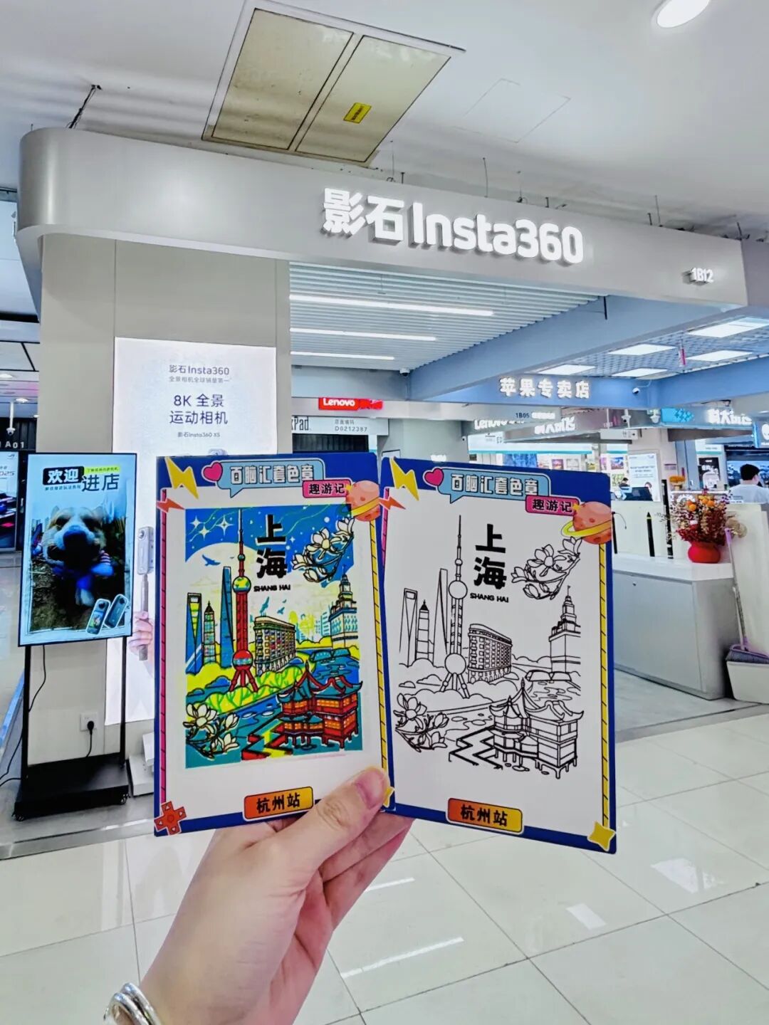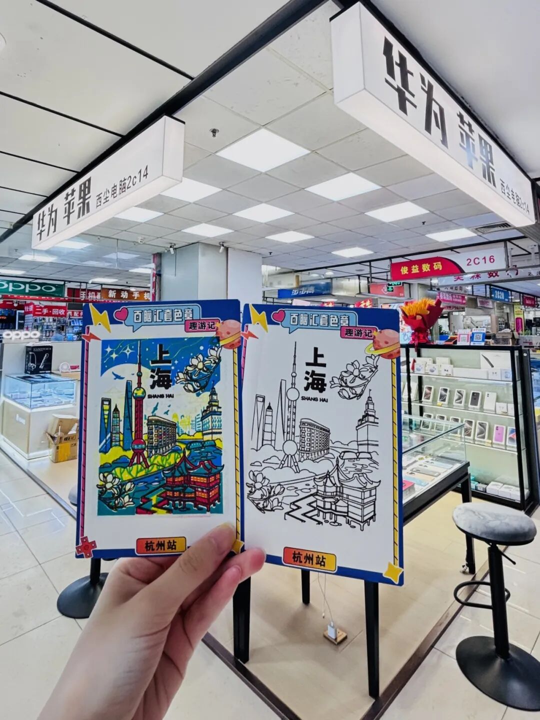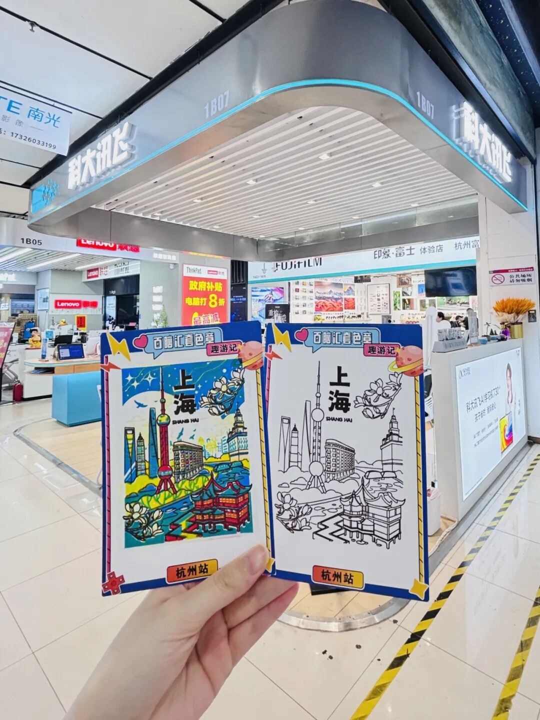 2、按照盖章路线拍照打卡并发布小红书笔记,即可得贴纸一份,笔记文案至少15字,带话题#杭州百脑汇 ,定位杭州百脑汇