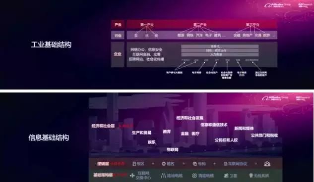 在底层有物理基础设施,光纤、设备、硬件终端构成了基础设施,硬件基础设施上面呈现了一个软的逻辑基础设施,就是刚才讲的TCP/IP基础协议、各种技术应用的协议、淘宝的交易系统和平台规则等等,这些构成了在“物理基础设施”上迭代出来的“逻辑基础设施”。在这两层基础设施上,工业、商业、产业、交通、旅游、政治、文化、媒体等等,被重新构造和重新定义。
