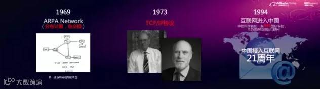 让我们进一步看一下信息革命的几个重要节点:1969年的ARPANetwork,最核心的要素是“分布计算”和“包交换”。简单理解,分布计算是TCP协议,包交换便是IP协议。从技术层面上讲,你的***我的手机为什么能相互连接起来?一个终端跟另外一个终端为什么能相互连接起来?这是由于我们每个手机里面都有一个ID号,都有一个MAC地址,两个地址可以通过技术协议在一个子网上相互识别。