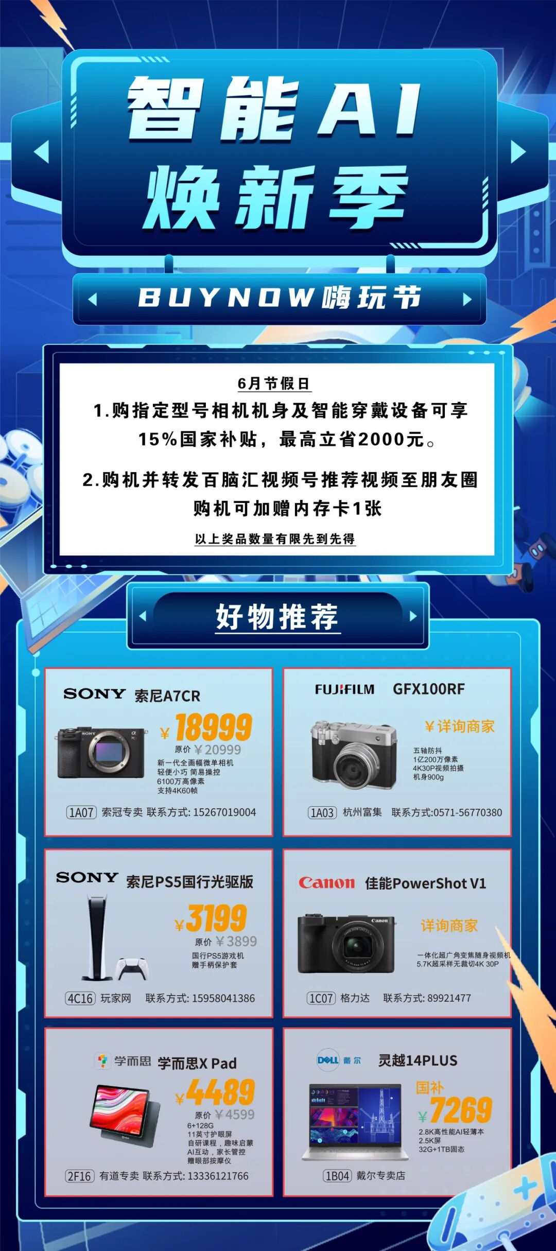 1、指定席位购机可享20%国补优惠