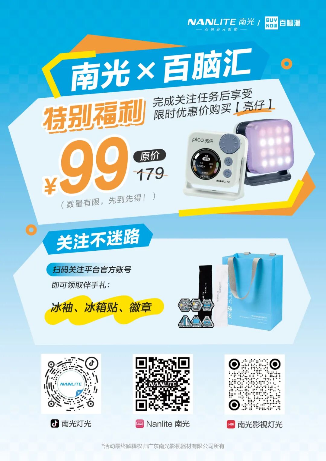 2、拍摄活动现在体验亮仔视频、照片发布小红书@百脑汇杭州店 @南光影视灯,可获赠南光伴手礼1份