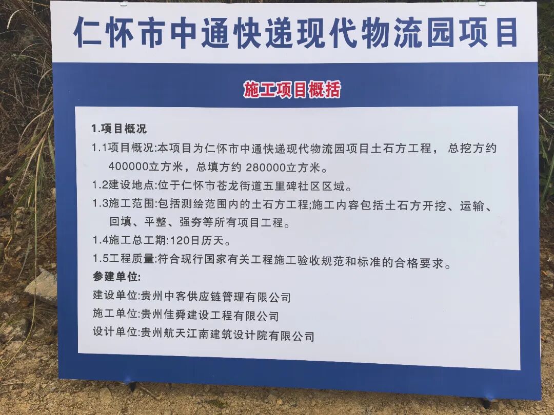 11月30日,仁怀市中通快递现代物流园项目在苍龙街道五里碑社区长腰溪组举行开工仪式,现场机械启动,标志着项目进入实质性建设阶段。