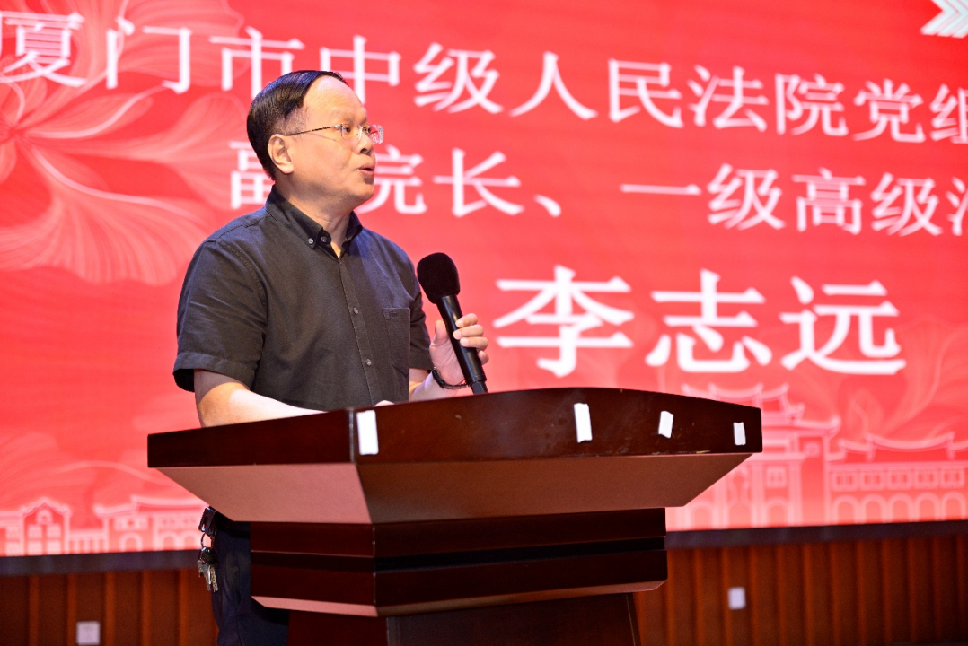 李志远对大赛的顺利举办表示祝贺,并向全体参赛同学和评委嘉宾致以亲切问候。他指出,厦门市中级人民法院与厦门大学长期携手深耕,在多个领域成果斐然。今年3月,双方还开展了深度交流活动,7位法官受聘成为厦门大学的实务导师。结合审判实践经验,他对同学们提出三点期望:希望同学们锤炼兼具宏观格局与微观严谨的法治思维;树立理性且饱含人文关怀的法治信仰;养成守正创新的法治素养,以开放的视野迎接未来的挑战。