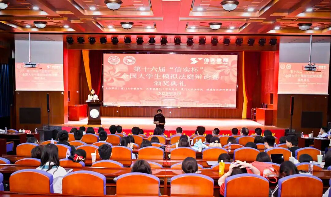 2025年5月12日,第十六届“信实杯”全国大学生模拟法庭辩论赛在厦门大学法学院模拟法庭落下帷幕。本次大赛由厦门大学教务处、共青团厦门大学委员会、厦门大学法学院和福建信实律师事务所联合主办,吸引了清华大学、武汉大学、中国人民大学等二十所国内知名高校代表队参赛。