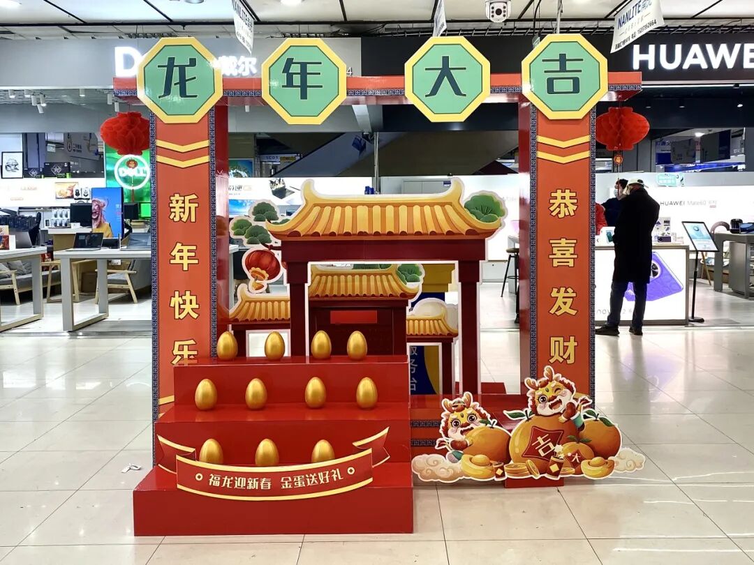 2.手持打卡牌在百脑汇现场拍照打卡4张(百脑汇门头、一楼中厅新年DP点、一楼任意门店、负一楼维修专区网红墙各一张)