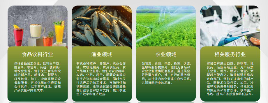 涵盖酒水饮料、冷冻食品、乳制品、休闲食品加工技术和装备,以及厨房加工设备等,还包括相关配件、测试与测量、自动化控制设备等。