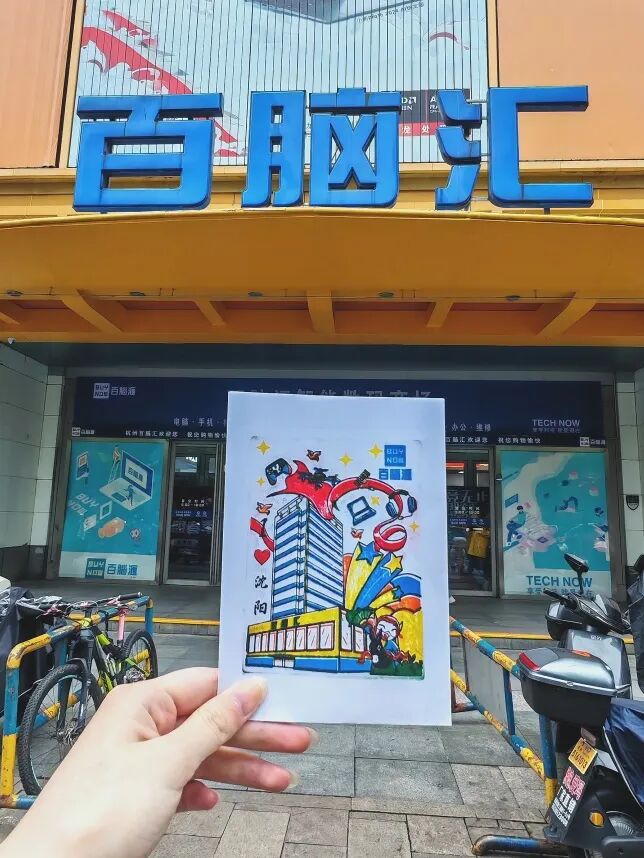 1、手持集齐的套色印章卡在百脑汇正门以及百脑汇内按路线拍照