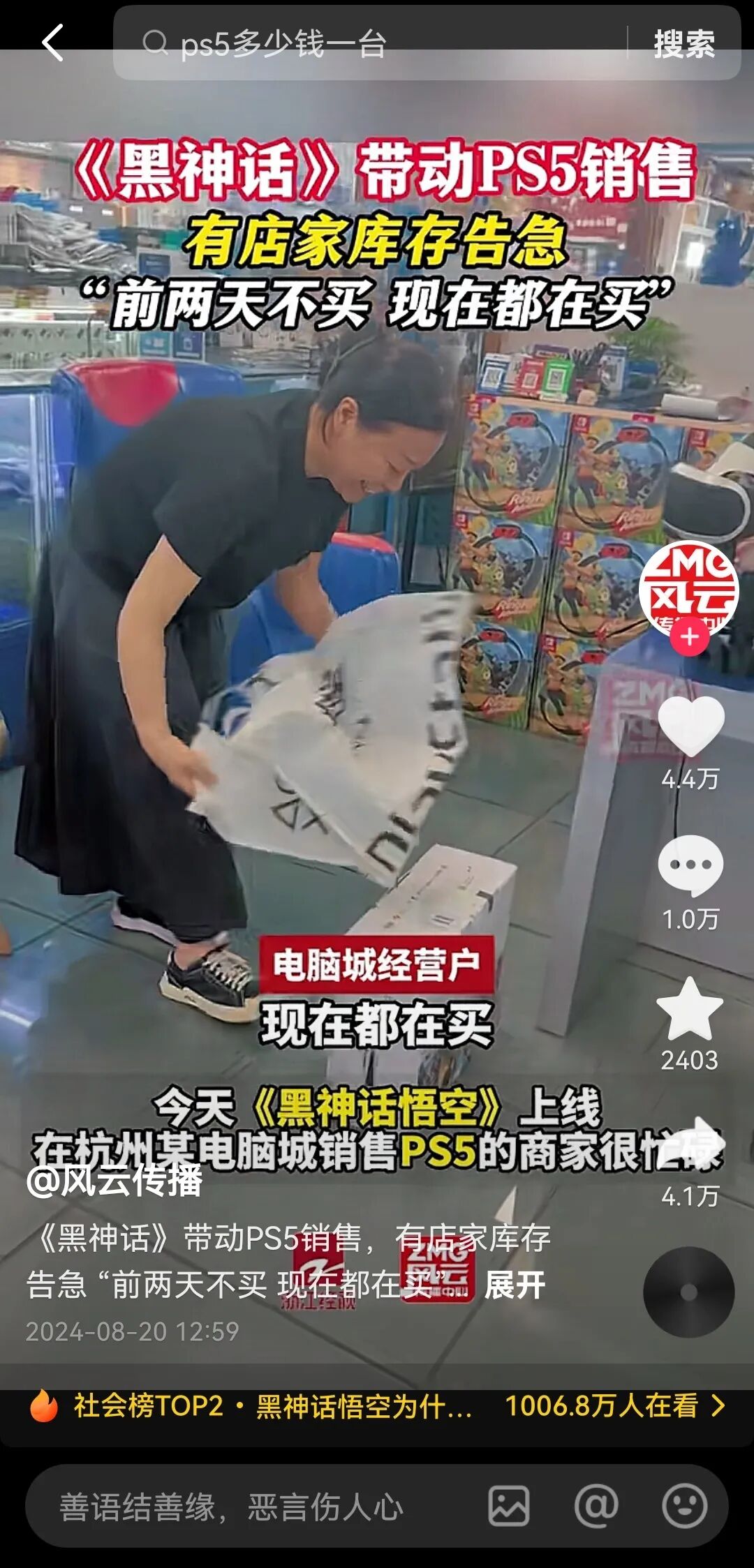 国产3A游戏大作《黑神话:悟空》于8月20日全球同步上线,登陆PS5、Steam、WeGame等平台,受到了广大玩家的热烈追捧。
