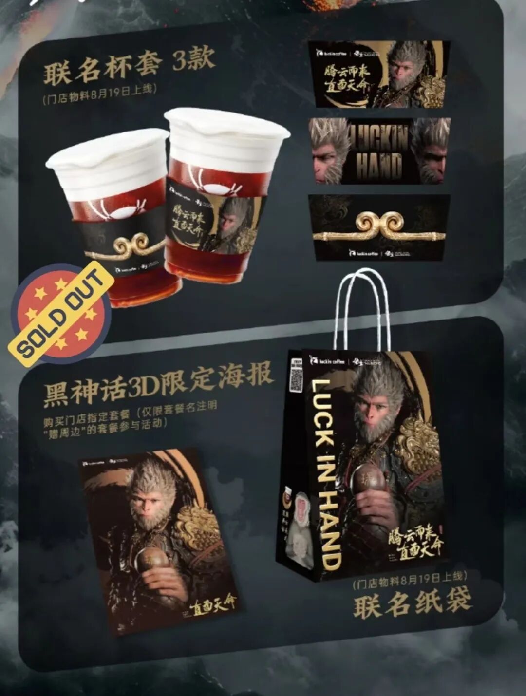 此外,瑞幸咖啡与《黑神话》的联名活动也是一度冲上热搜,瑞幸咖啡推出了《黑神话》联名咖啡产品—腾云美式”,一上线,限定海报套餐就秒售罄。想要购买到相关周边,可以来杭州百脑汇1F瑞幸碰碰运气哦~