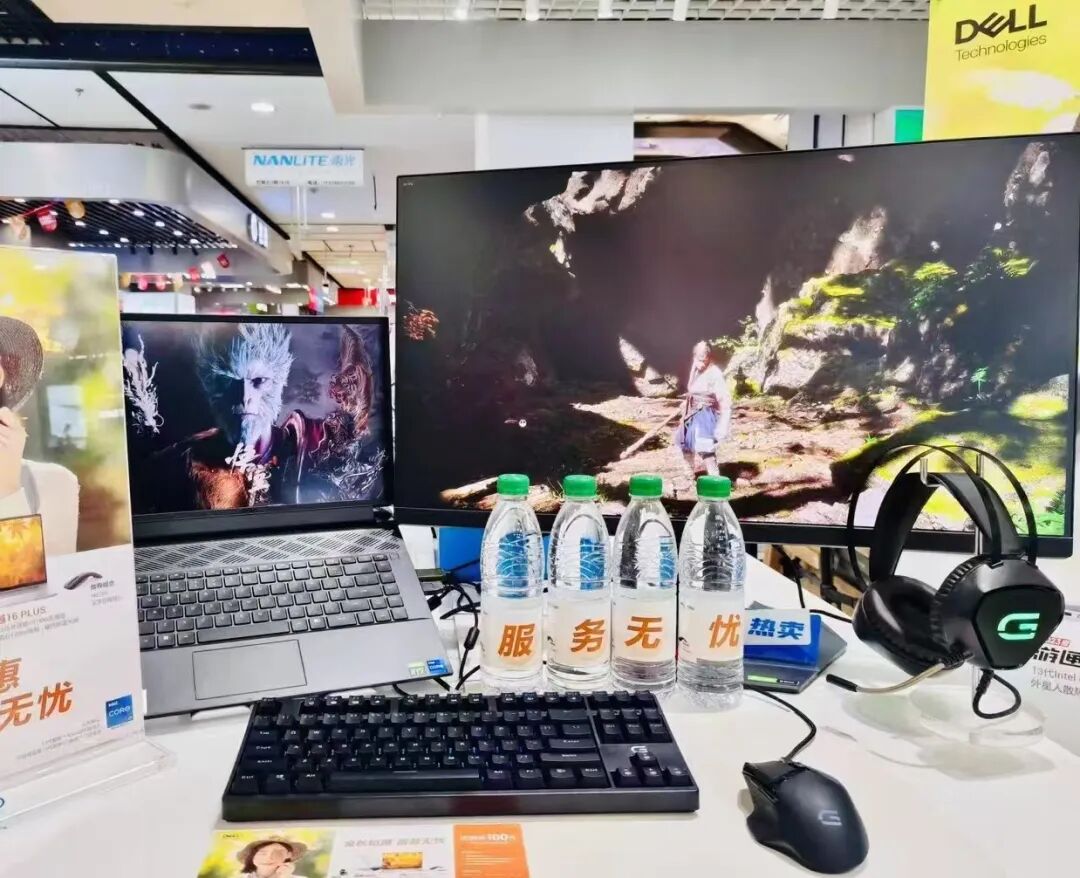不少杭州百脑汇的商家在自己的摊位里展示国产3A游戏大作《黑神话:悟空》,吸引了大量消费者驻足。