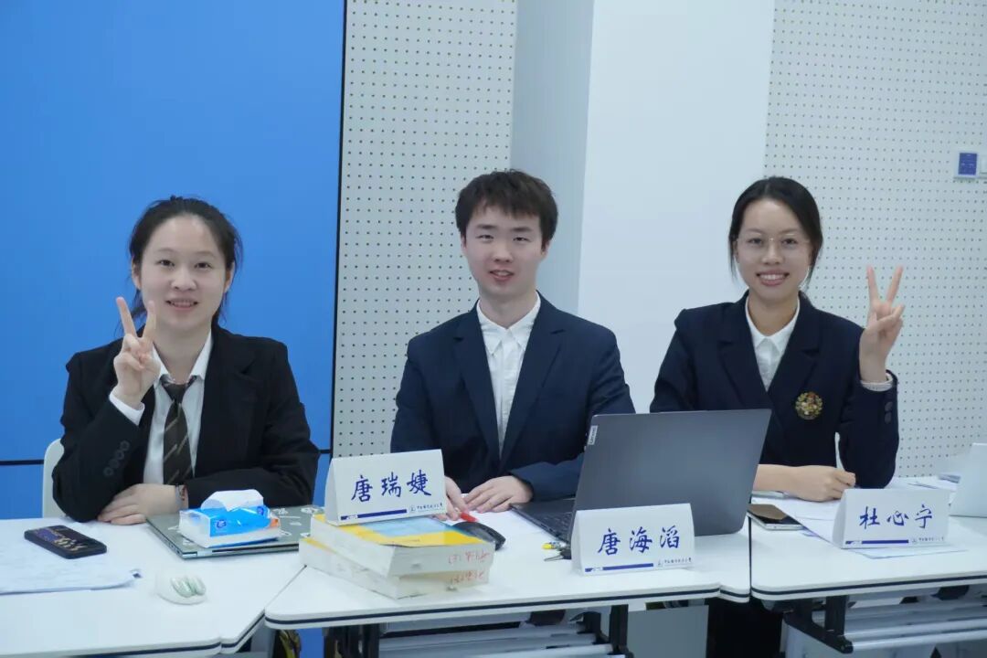 在发布赛题至赴厦门参赛的一个多月里,全体参赛队员在指导老师的悉心帮助下齐心协力,全身心投入备赛。在书状撰写过程中,队员们认真研读专业书籍、广泛检索案例,逐步理清思路。在撰写书状时,队员们开展了4次队内模拟赛,通过模拟赛不断发现书状中存在的问题并寻找资料完善,在指导老师的指导下数易其稿、反复打磨,最终定下终稿。在与小组赛对手交换书状后,队员们对对手书状的论点和论据进行深度挖掘,制定场上应对策略并多次开展队内模拟赛。正式比赛中,队员们慷慨陈词、从容应对,展现出了良好的专业素养和精神风貌。