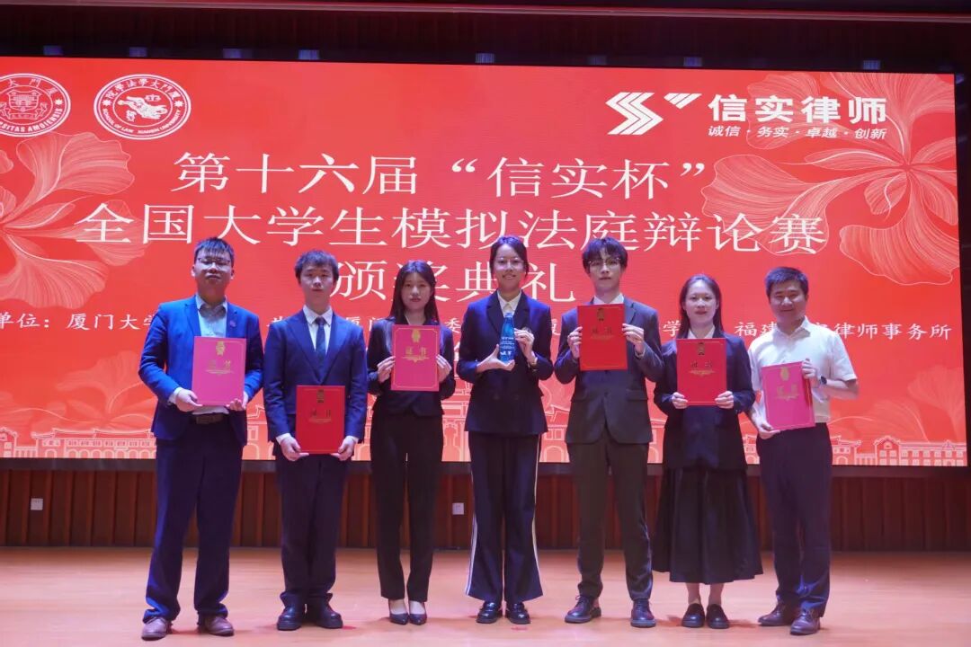 近日,第十六届“信实杯”全国大学生模拟法庭辩论赛于厦门大学思明校区成功举办。本次大赛由厦门大学法学院和福建信实律师事务所联合举办,吸引了来自清华大学、同济大学、浙江大学、中国人民大学等二十所国内知名高校法学院系的优秀法学学子参与。经激烈角逐,武汉大学代表队夺冠,我院代表队斩获亚军,蔡怡慧、柳佳、唐瑞婕三位同学荣获“优秀辩手奖”。