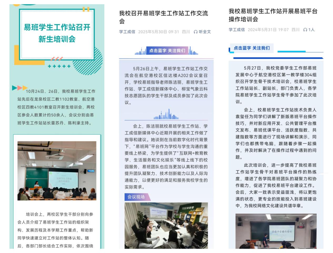 学生工作站联合各学院开展迎新生、校园文化比赛、防诈反诈、气象科普等各类活动,积极参与易班网、易班优课平台、省易班发展中心开展的活动,并在活动中取得较好的成绩。