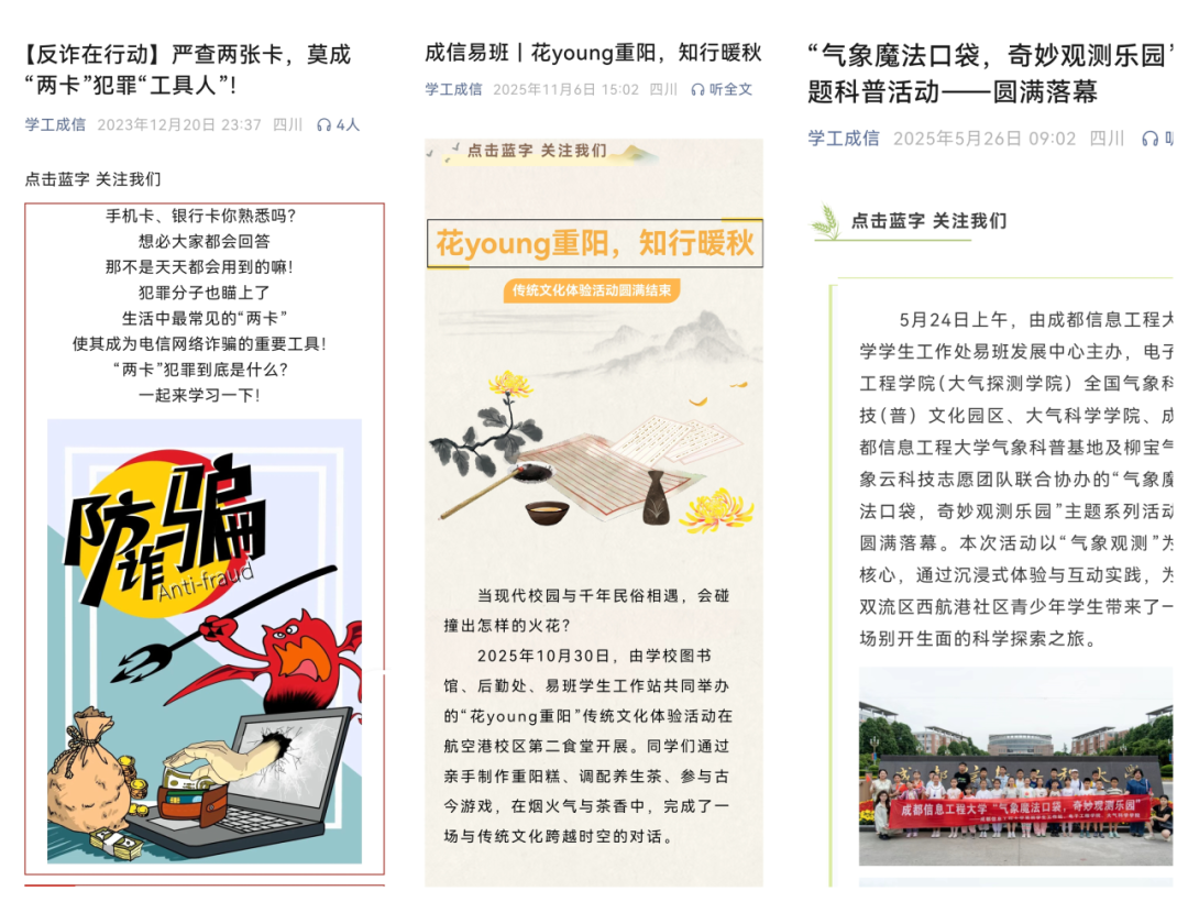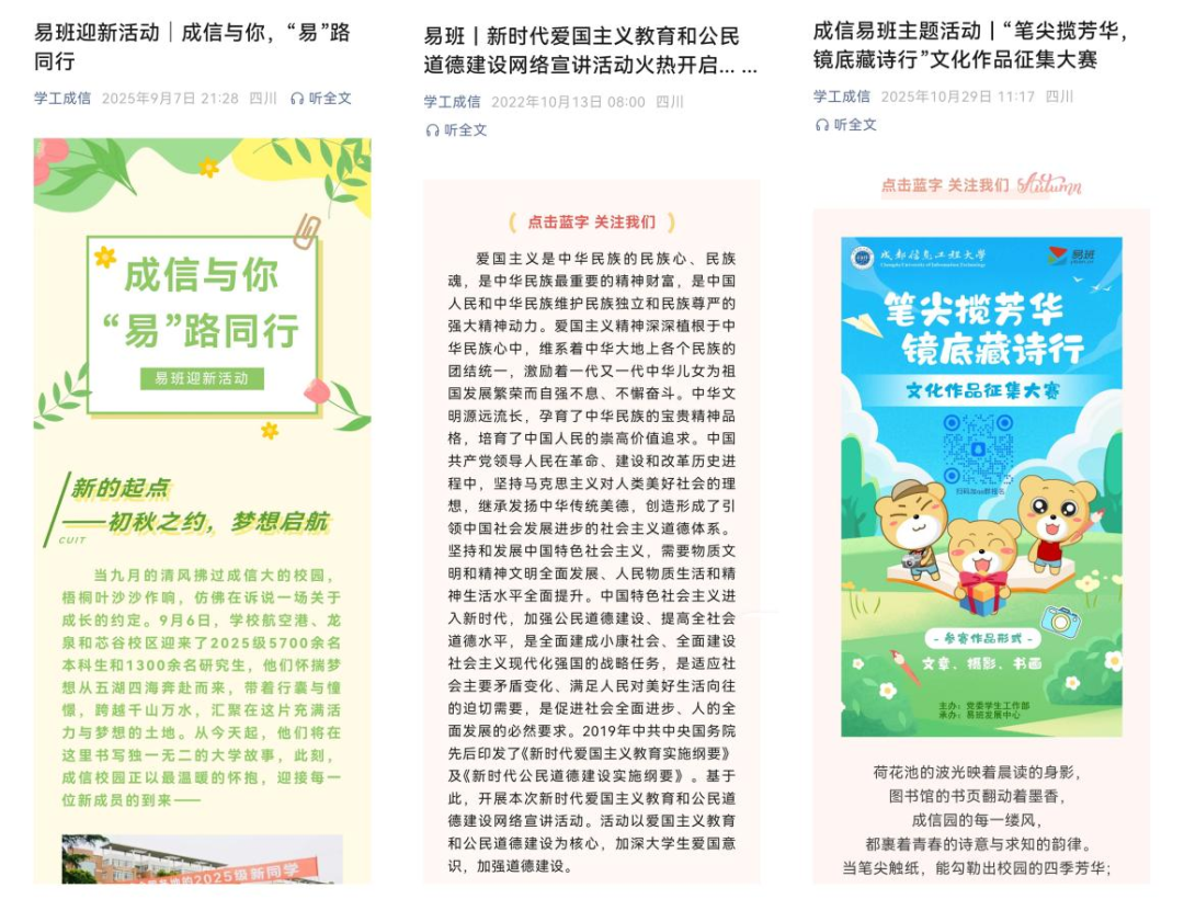 成都信息工程大学易班工作站将始终锚定“立德树人”根本任务,以“成于大气,信达天下”精神为指引,立足线上思政课群、线下校园文化、科普实践活动,持续深化网络思政与学科特色、育人场景的深度融合。未来将继续深耕内容创新与服务优化,力争成为全国高校易班建设的优秀单位,为培养兼具家国情怀与专业素养、拥有“大气格局、信实品格”的时代新人,不断注入力量。