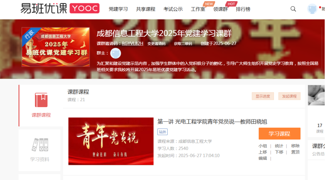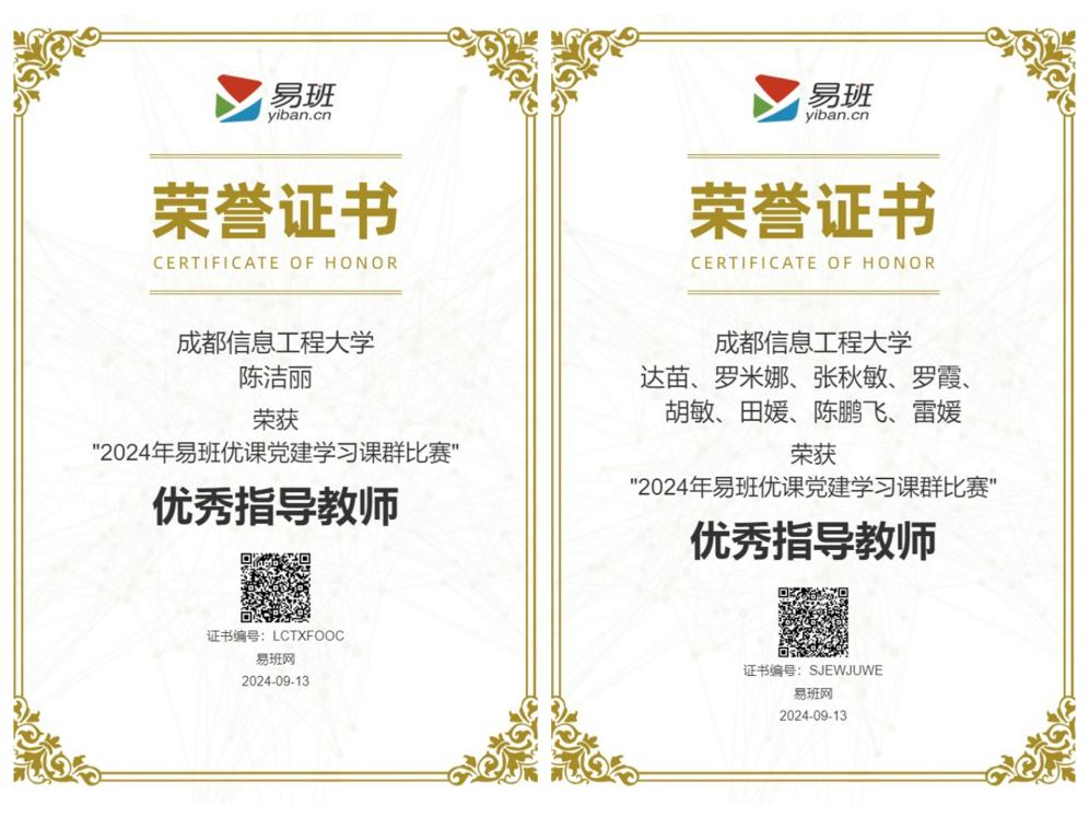 在全国易班网“2025年易班优课党建学习课群比赛”活动中,我校荣获“优秀组织奖”,我校多名易班指导教师荣获优秀指导教师荣誉;