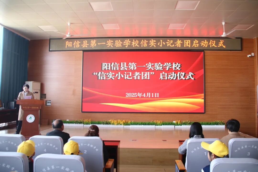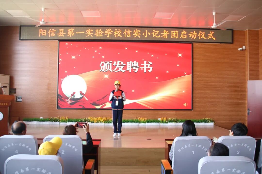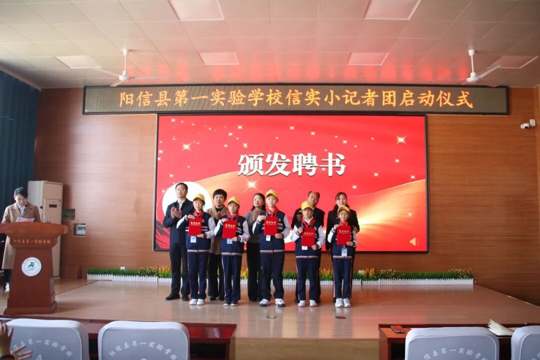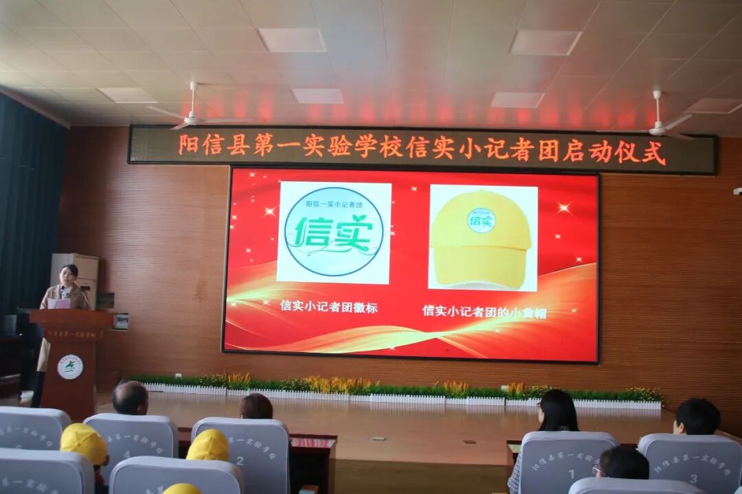 在庄严的氛围中,阳信县第一实验学校“信实”小记者团宣誓仪式举行。小记者们高举右拳,庄严宣誓,表达了他们对记者工作的热爱和做好小记者的坚定决心。