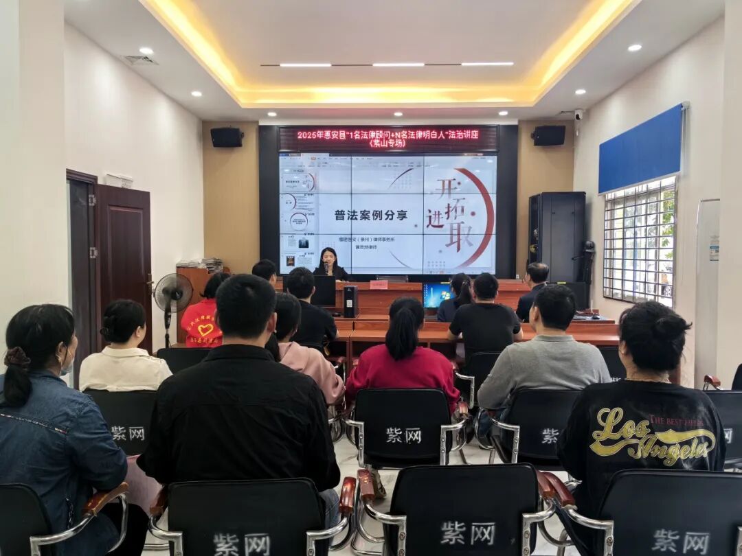 近日,紫山司法所联合福建信实(泉州)律师事务所黄思烨律师,开展“1名法律顾问+N名‘法律明白人’”专题法治讲座。镇村“法律明白人”、调解员参加活动。