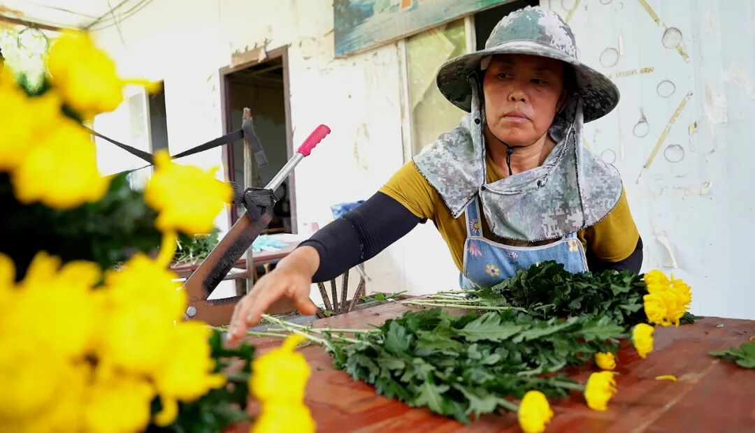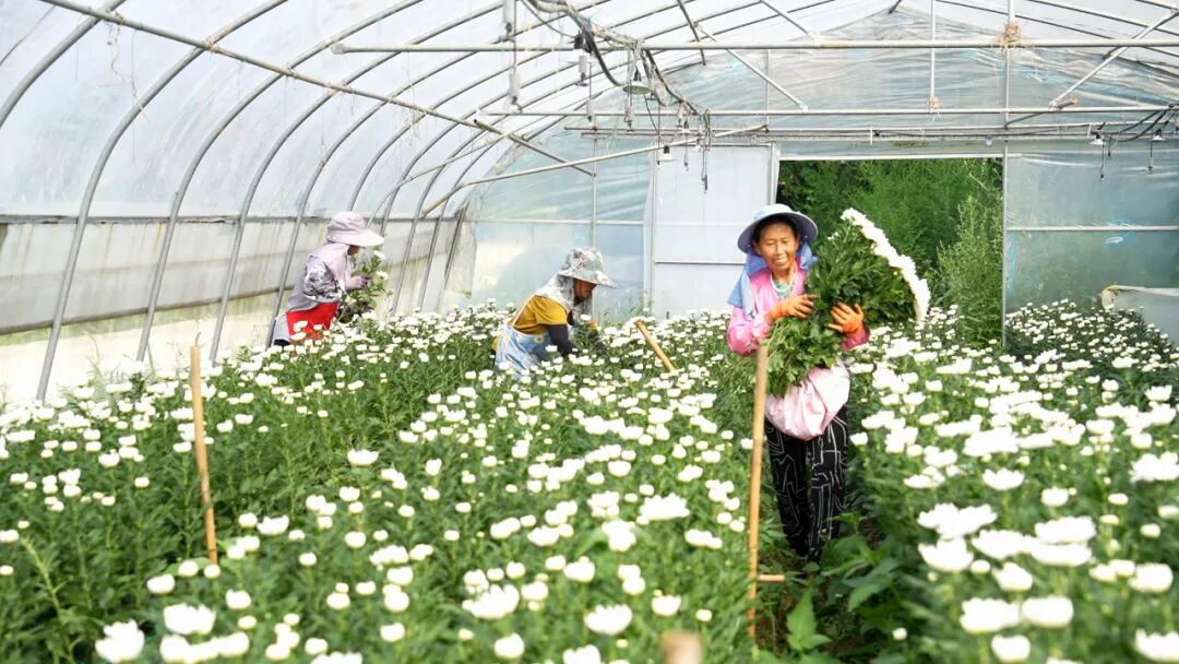 这几天,大棚内各色鲜花争奇斗艳,工人们正忙碌地穿梭在花丛中采摘,脸上洋溢着丰收的喜悦。“我们在家都是种庄稼,有这个大棚后,我们来采花、包花,一天还是能做到120元,在这里打工还是可以的。”务工群众唐永会高兴地说。