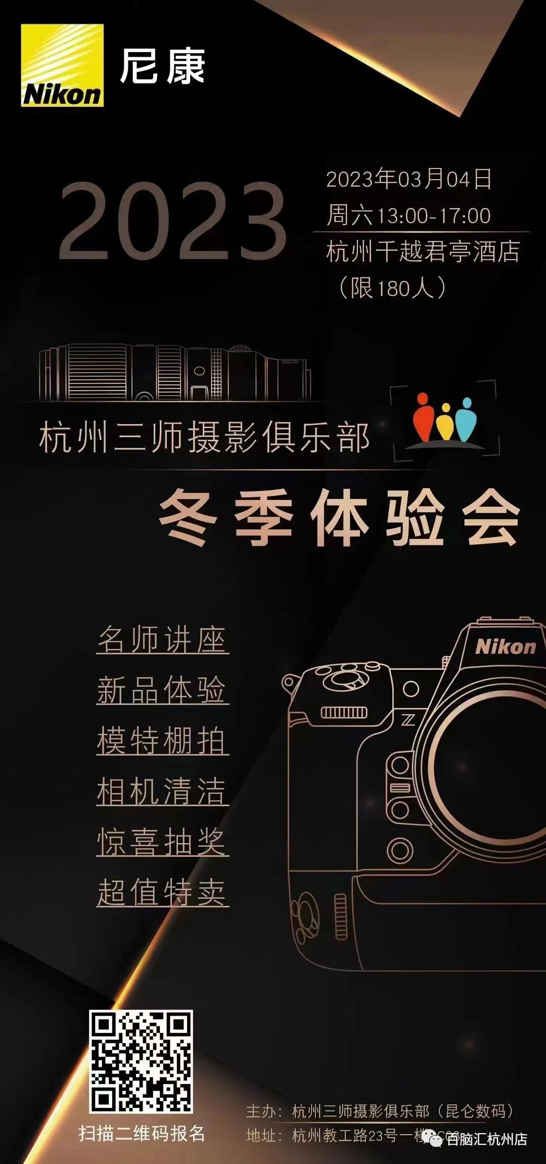 门店信息:杭州百脑汇1楼 尼康体验店 1C06
