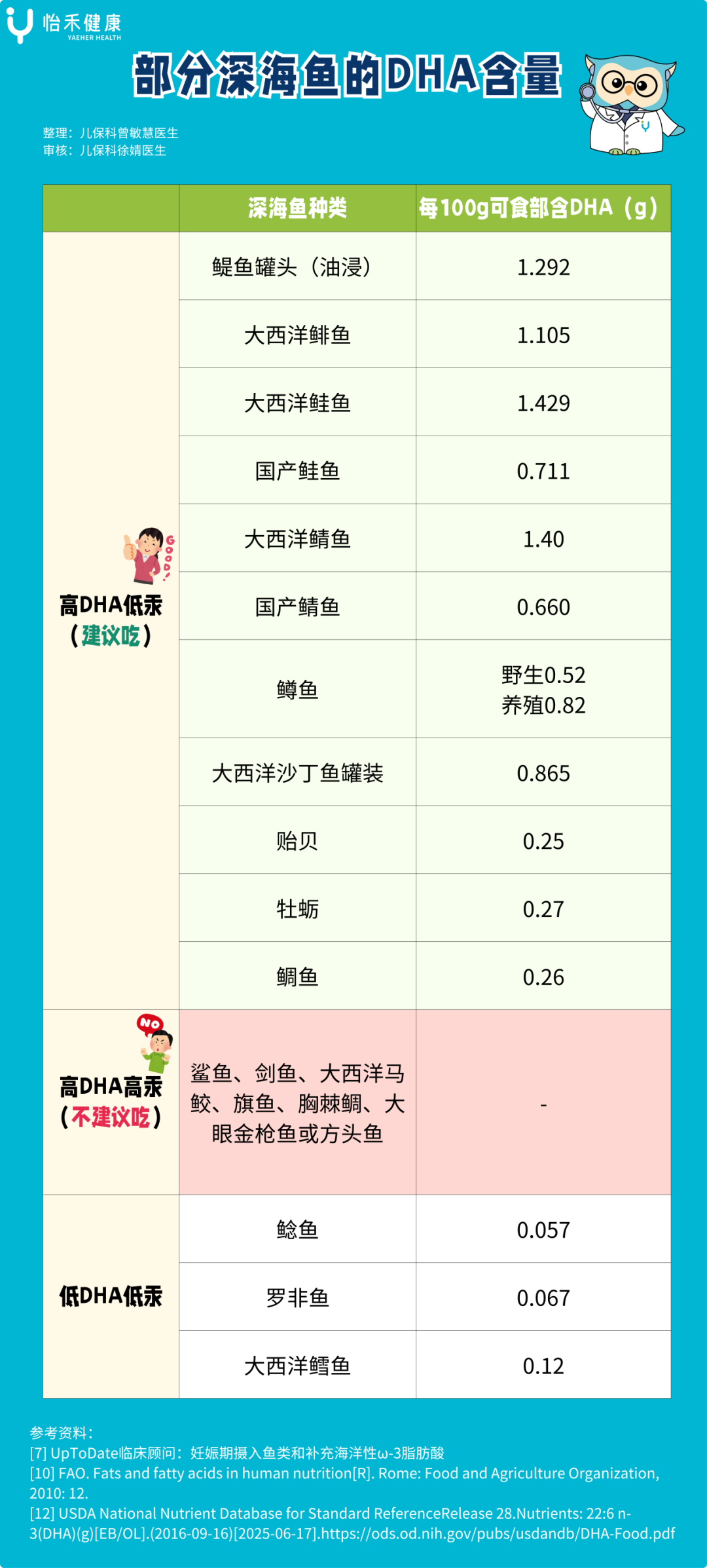 以上列出鱼类的DHA含量会受到季节、养殖方式、产地等影响而不同,所以正常儿童也没有必要精确到克数地吃鱼。