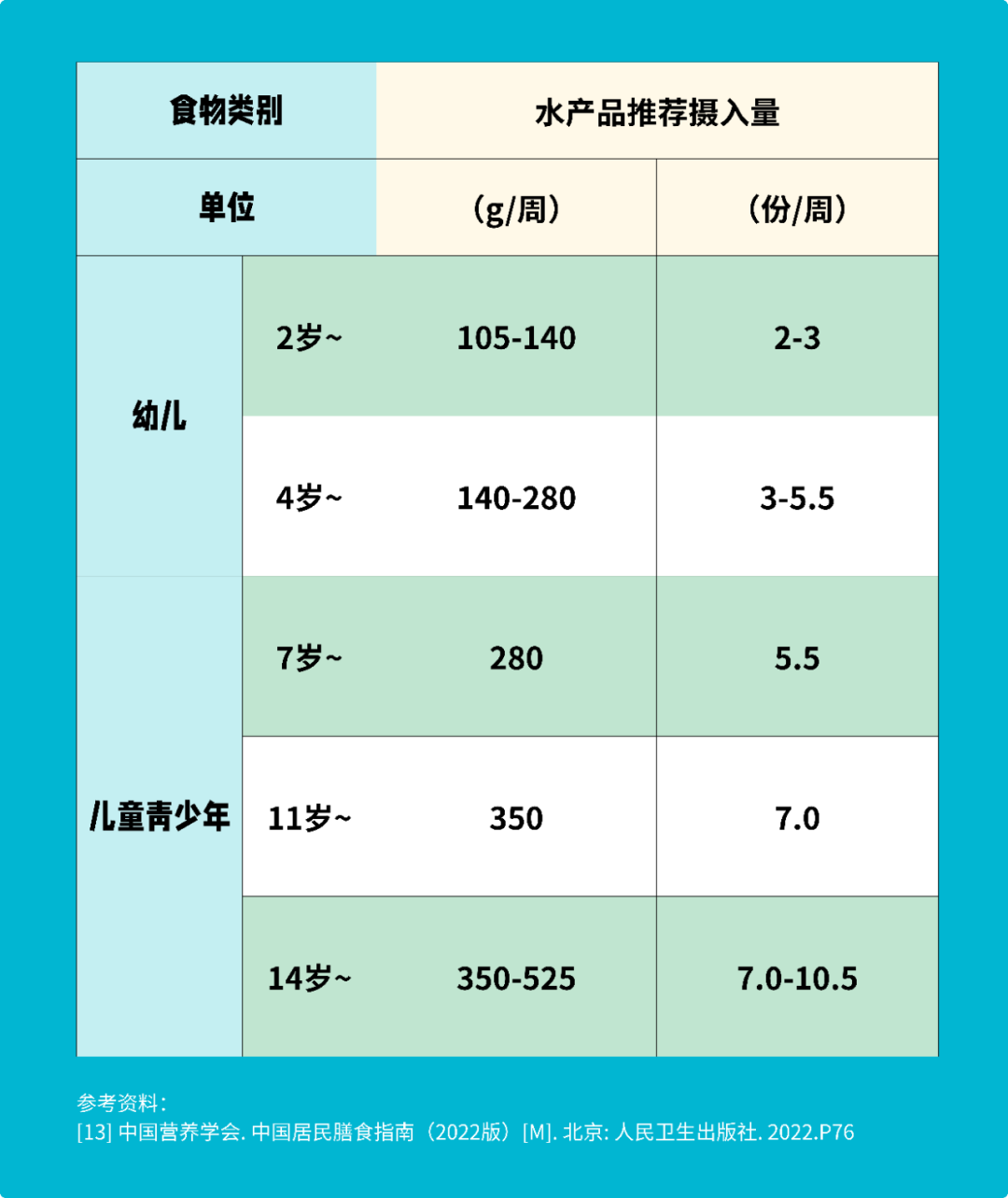 中国营养学会也给出了水产品摄食的建议[13],以上述表格中的推荐鱼类优先,供大家参考。