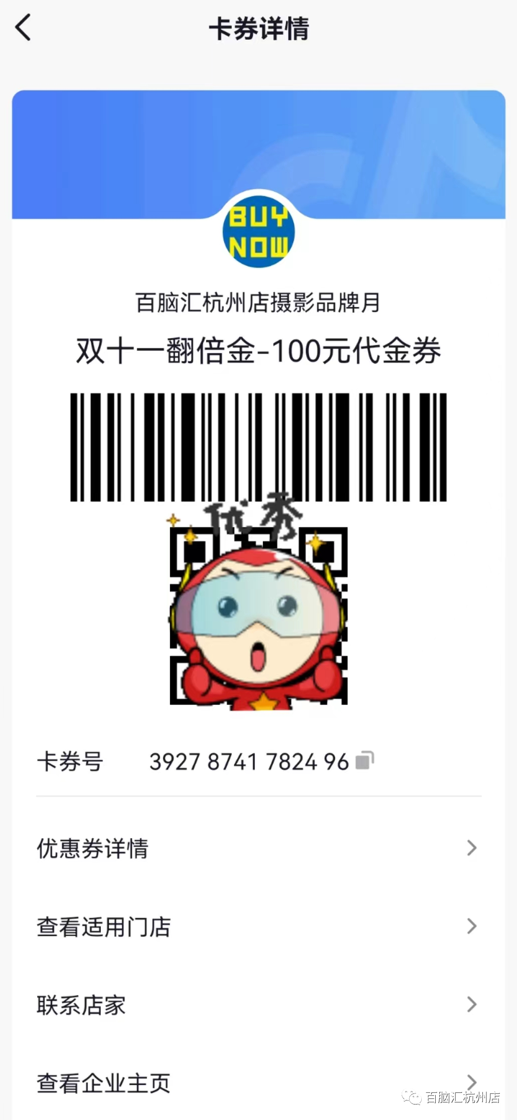 抖音搜“百脑汇 杭州店”在商家主页领取100元代金券